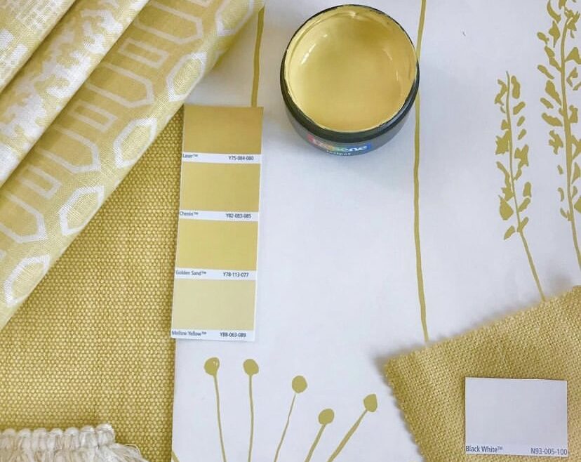 This could be a single shade that ties all the patterns together or a set of complementary hues.