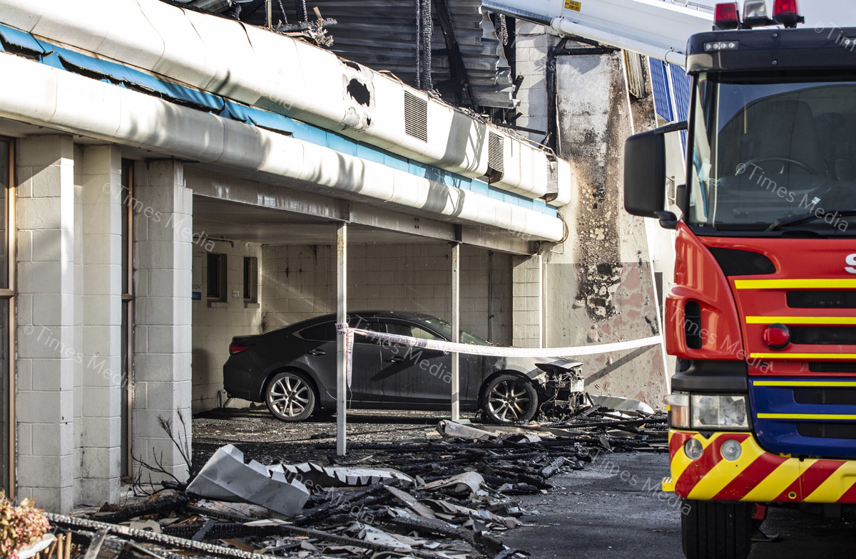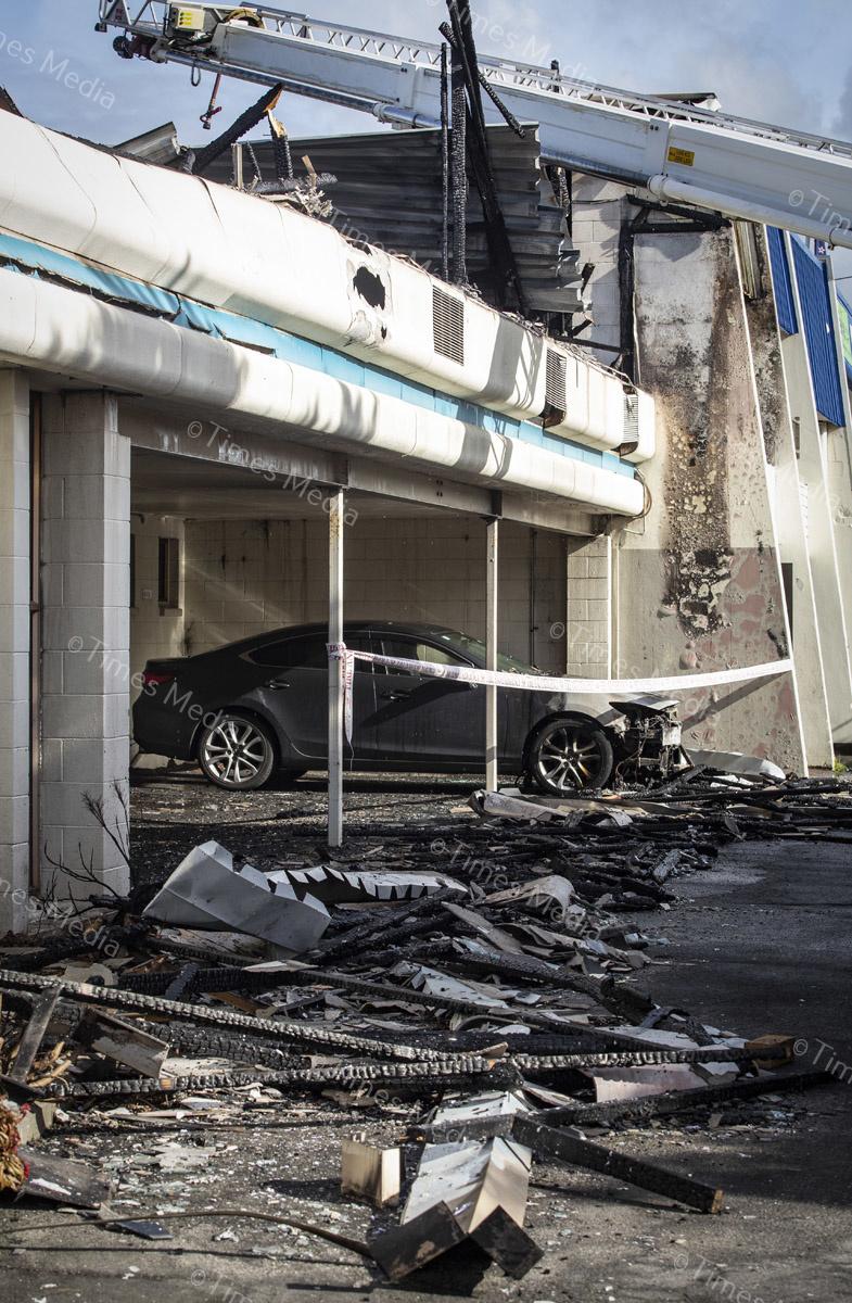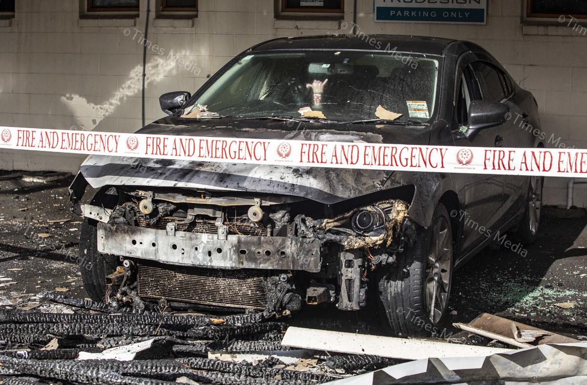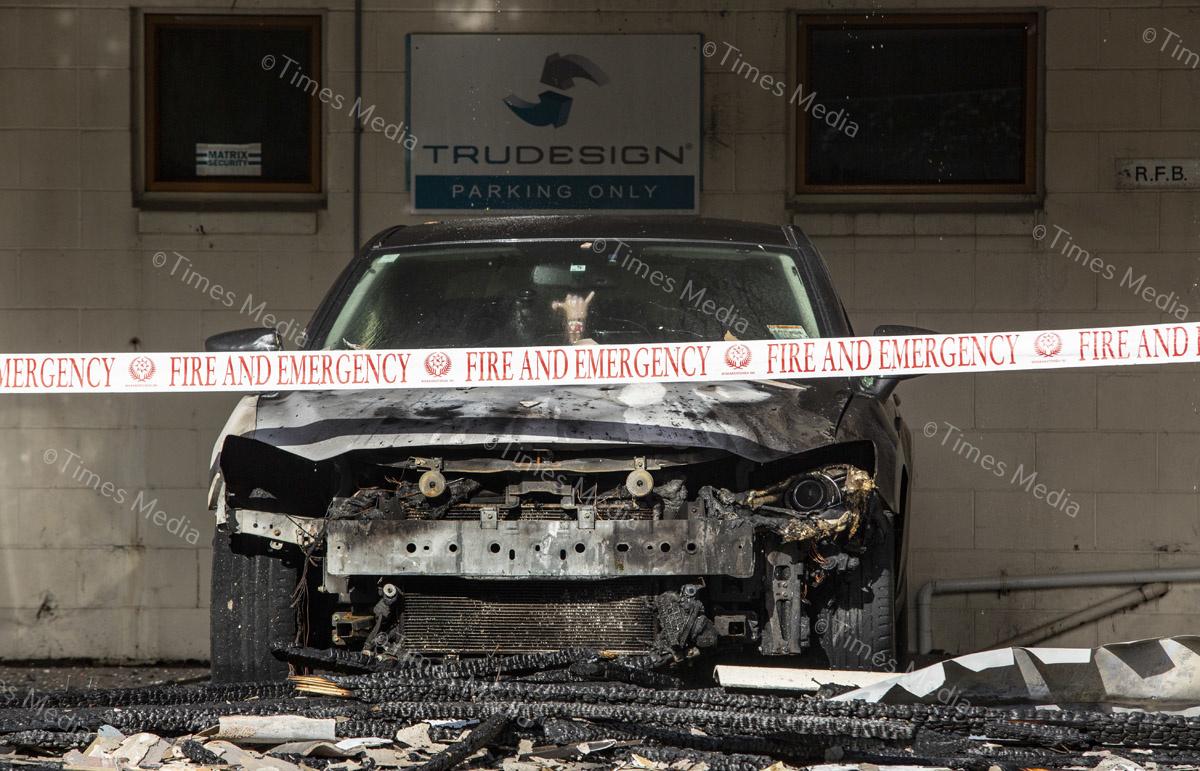 A fire in the office building of TruDesign Plastics Ltd on July 28 caused severe damage to the building and cars parked outside it, fortunately the fire was contained before it could reach the plastics factory. Photos Wayne Martin.