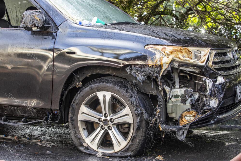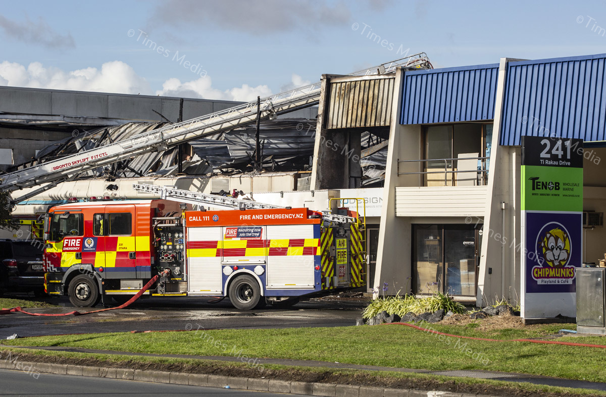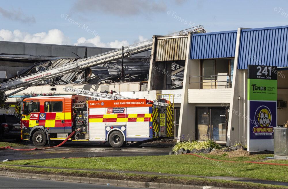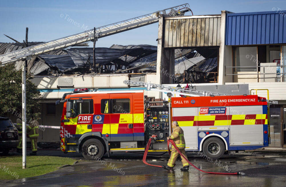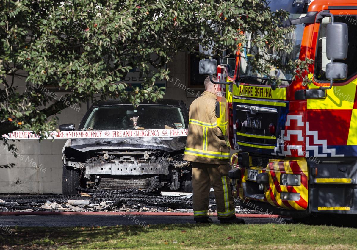 A fire in the office building of TruDesign Plastics Ltd on July 28 caused severe damage to the building and cars parked outside it, fortunately the fire was contained before it could reach the plastics factory. Photos Wayne Martin.