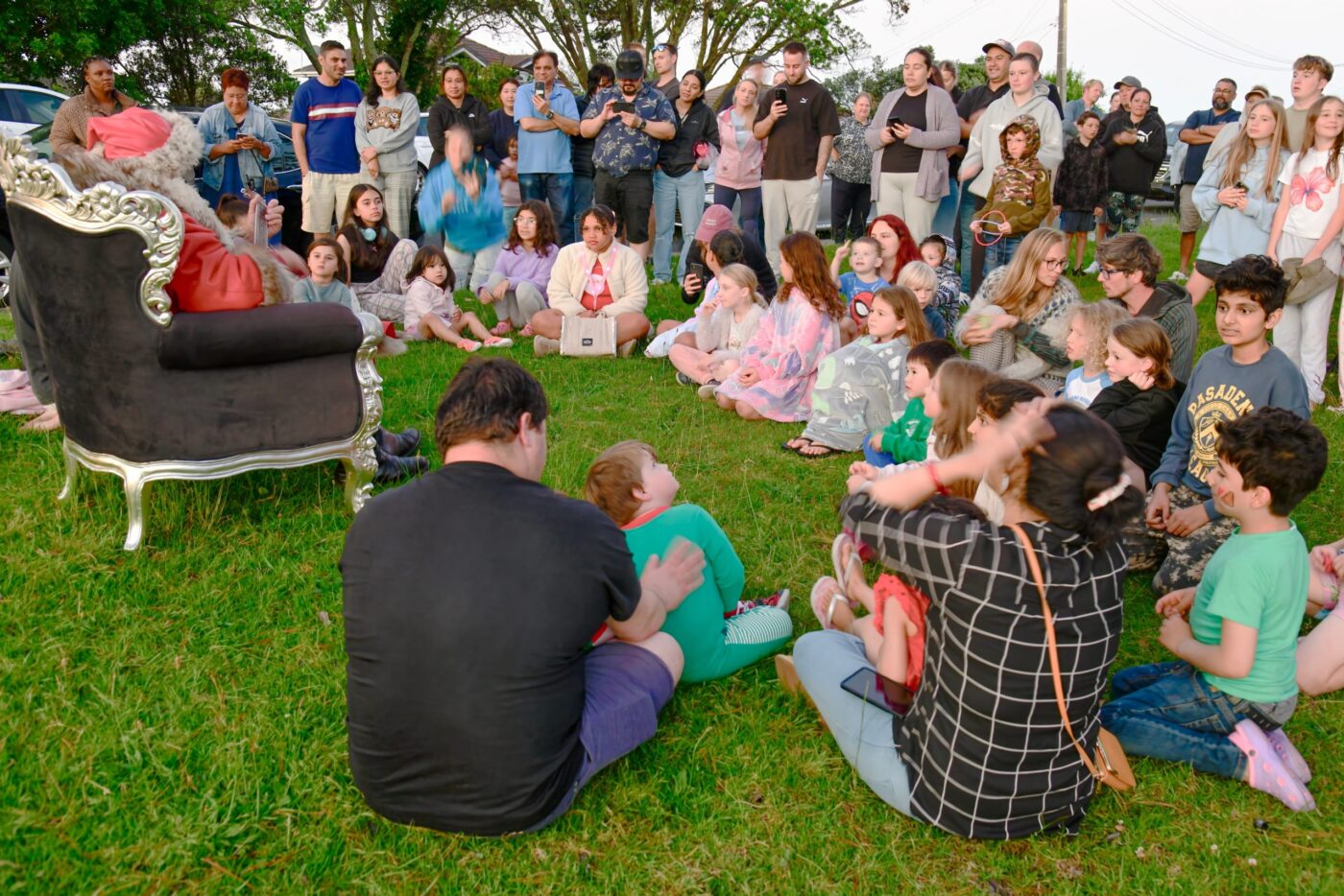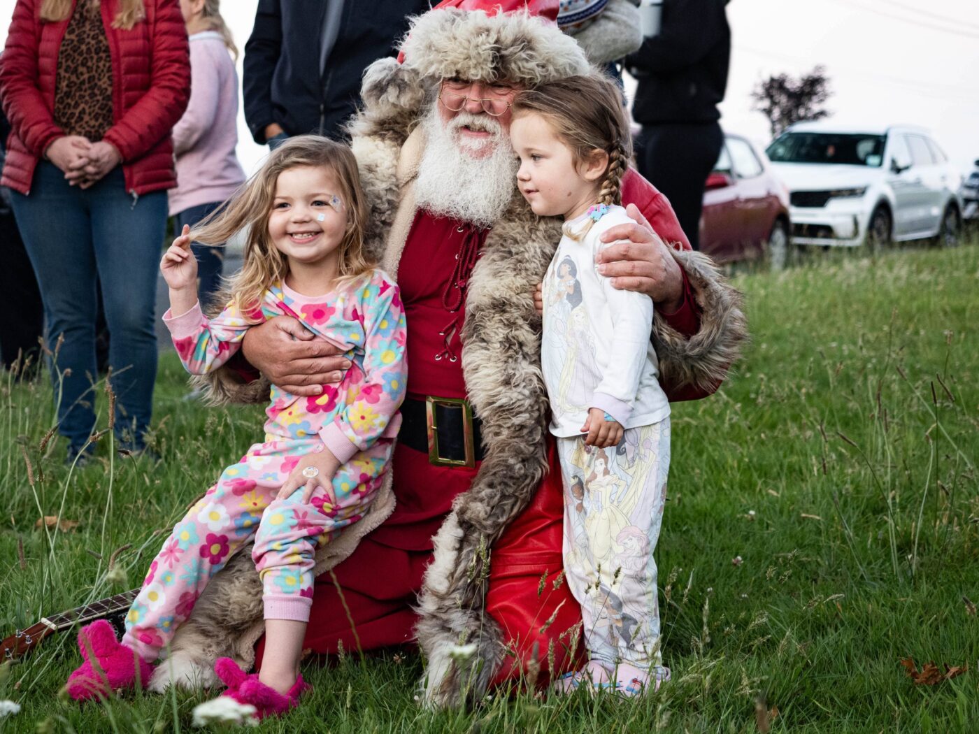 在 2024 年圣诞灯饰庆祝活动上,家人聚集在斯托克德山的圣诞老人周围。文件照片由豪维克摄影协会的鲍勃-麦克里提供