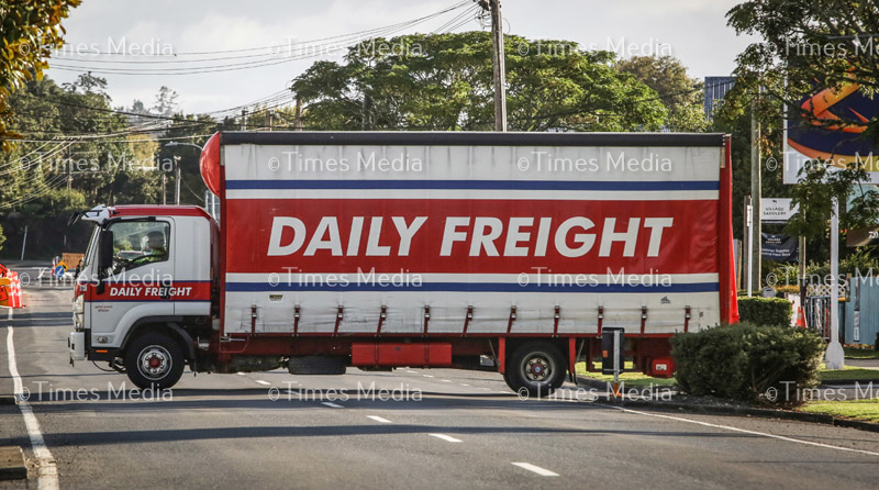 Trucks are busy delivering supplies to essential services, this one in Clevedon, on the second day of Covid 19 lock down in New Zealand.