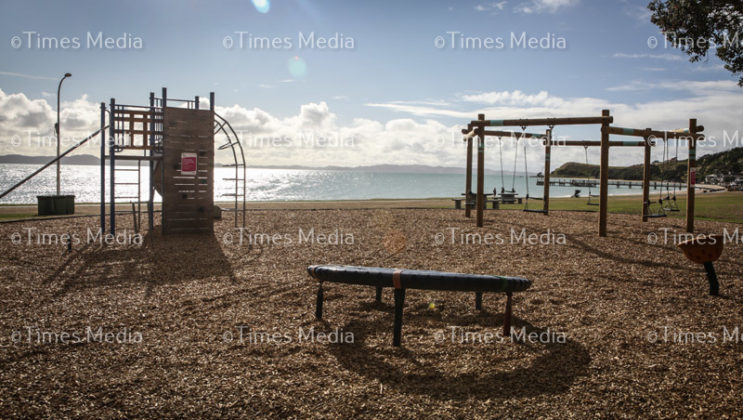 Maraetai Wharf, a popular launching point for young swimmers to bomb off, was sadly quiet on the second day of Covid 19 lock down in New Zealand.