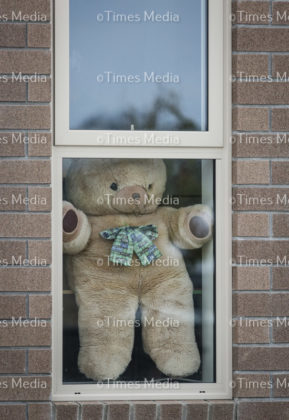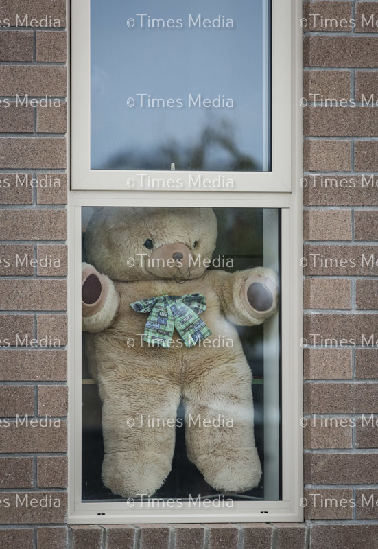 Sophie & Dylan McKechnie with their teddy bears. Cuddly bears are being displayed in community home windows as part of the Bear Hunt, something to put a smile on children’s faces as they are out exercising during the Covid 19 lock down in New Zealand.