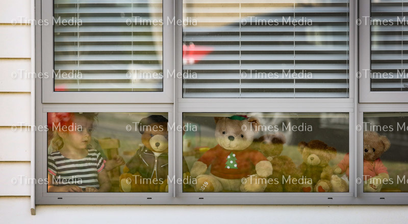 Sophie McKechnie with her teddy bears. Furry creatures are displayed in community home windows as part of the Bear Hunt, something to put a smile on children’s faces while they’re out exercising during the Covid 19 lock down in Beachlands, Auckland, New Zealand.