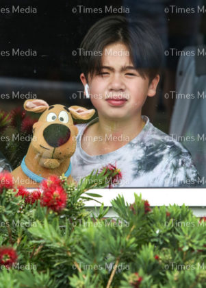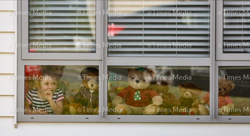 Charlie Martin, happy to be part of the Bear Hunt. Cuddly creatures are being displayed in community home windows as part of the Bear Hunt, something to put a smile on children’s faces as they are out exercising during the Covid 19 lock down in New Zealand. the Covid 19 lock down in New Zealand.