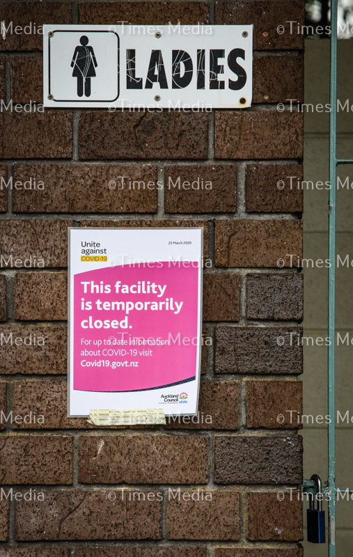 Toilets at Bucklands Beach Yacht Club boat ramp in Auckland, closed during Covid 19 lockdown in New Zealand.
